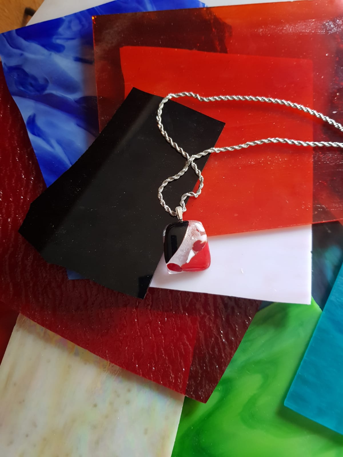 23-Colgante vidrio fundido "ojo turco",diseñado en círculos concéntricos en tonos blanco y rojo. 0,00 UYU 0,00 UYU