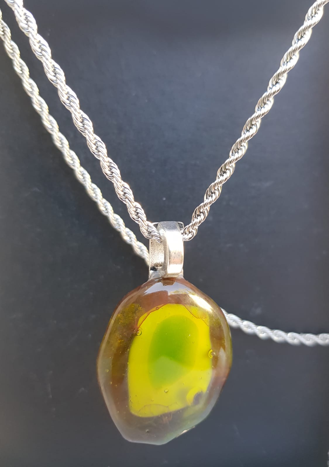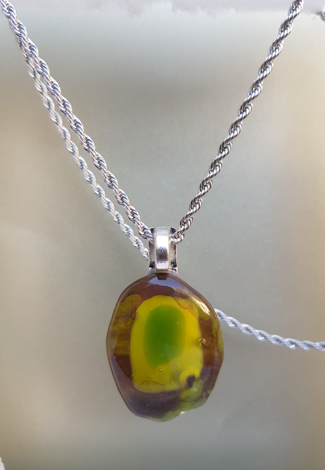 Llamativos colores en este diseño irregular ,que parecen estar flotando,atrapados en una burbuja.