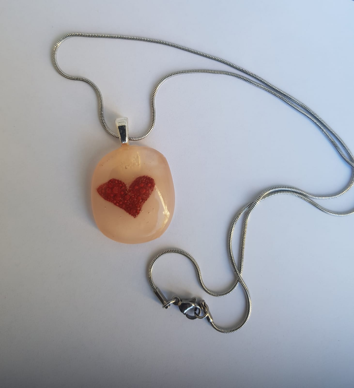 Dile cuánto la quieres con este corazón pintado sobre vidrio rosa,cubierrto con vidrio transparente,llevado luego a temperaturas extremas para que los colores se mantengan inalterables con el paso del tiempo.