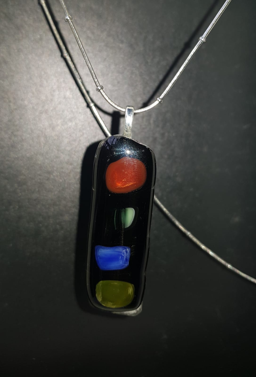Viene con una cadenita de acero quirúrgico,que no se opaca ni ennegrece.