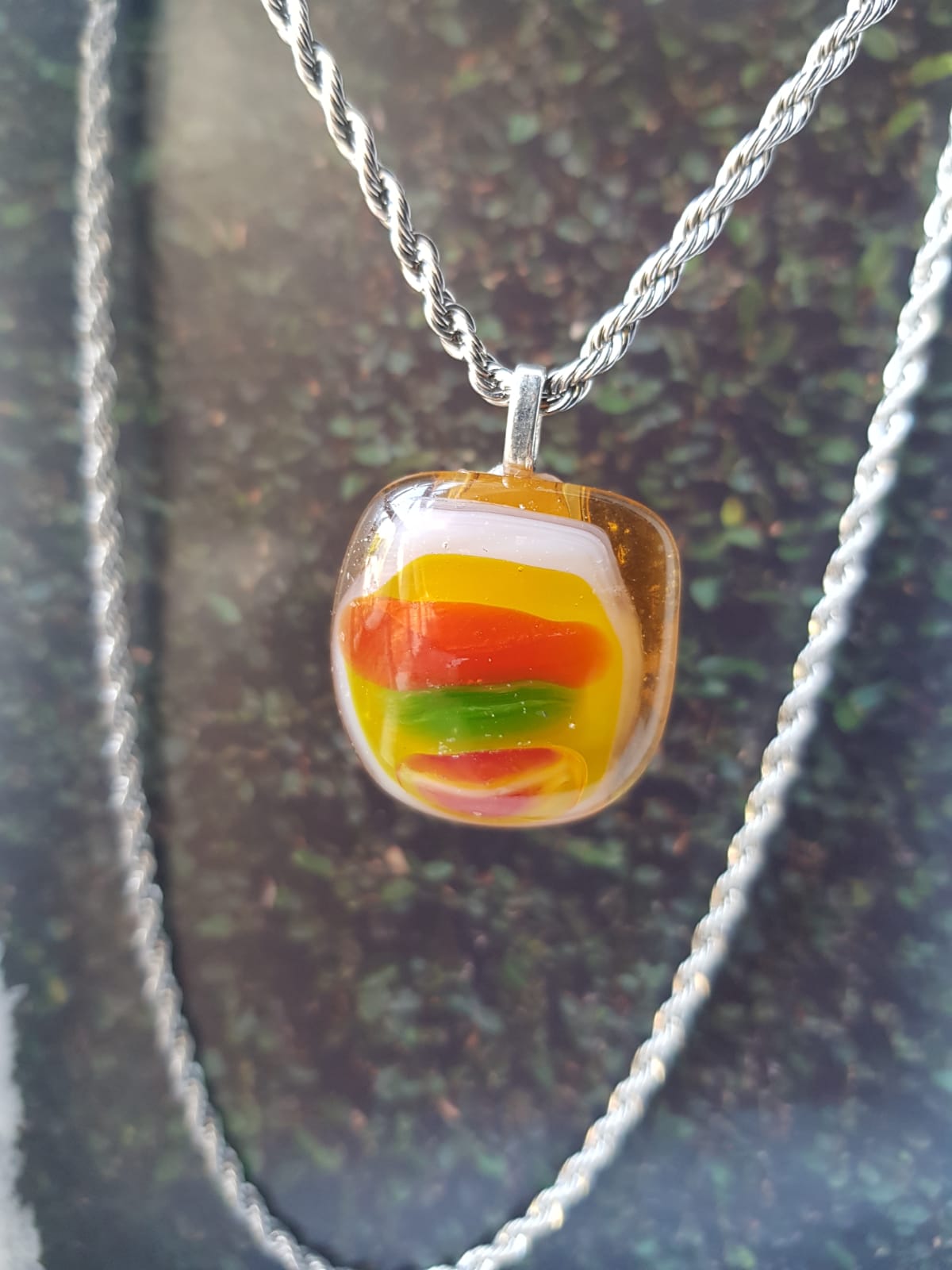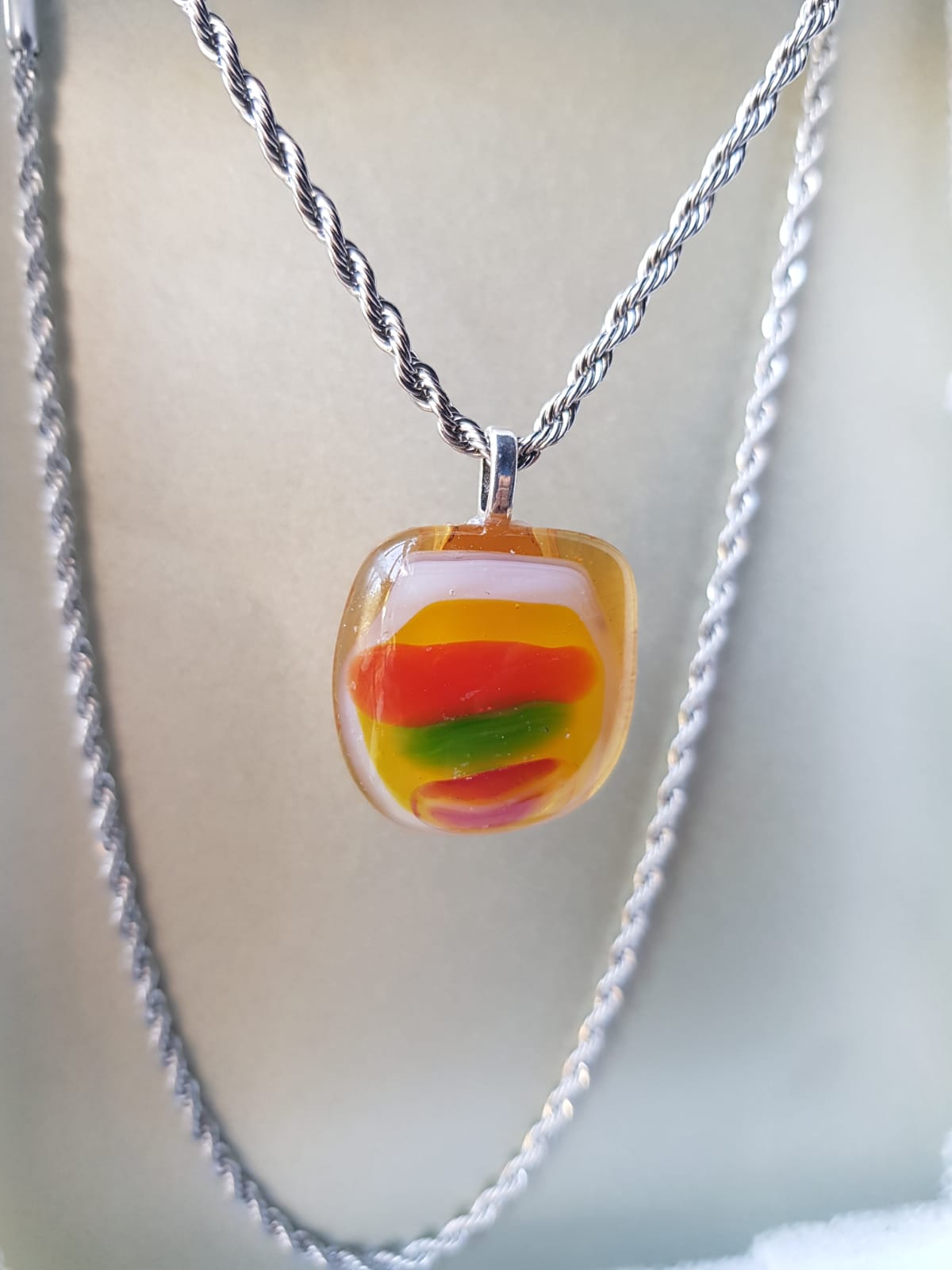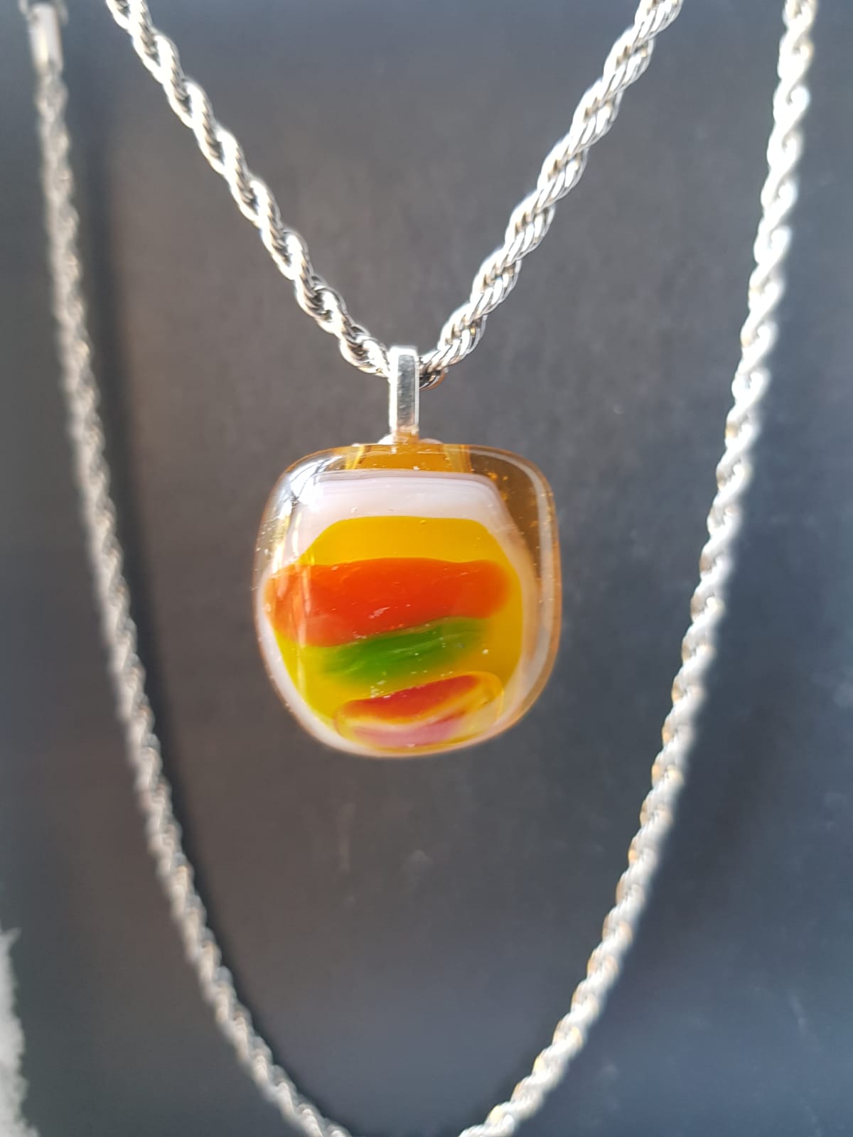 El vidrio ha sido cortado a mano y luego derretido en un horno caliente a una temperatura de 800 grados centígrados para lograr el resultado deseado.
