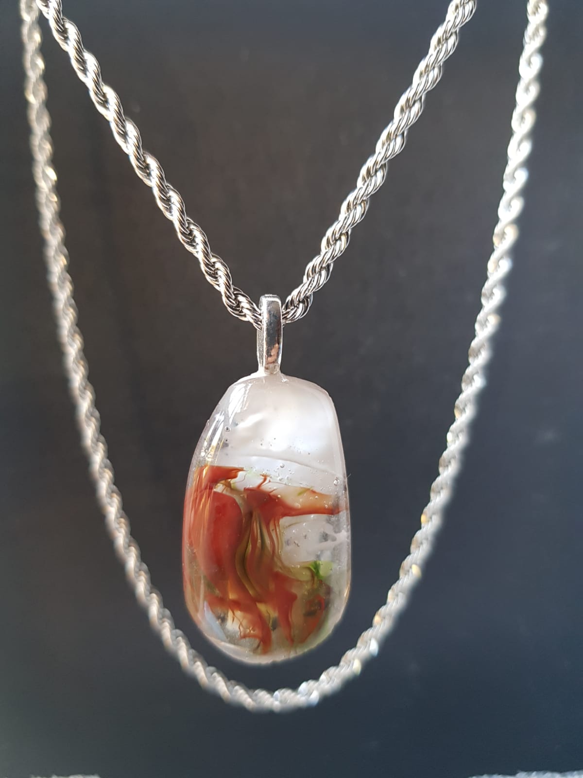Viene con una cadenita de acero quirúrgico que no se opaca ni ennegrece.