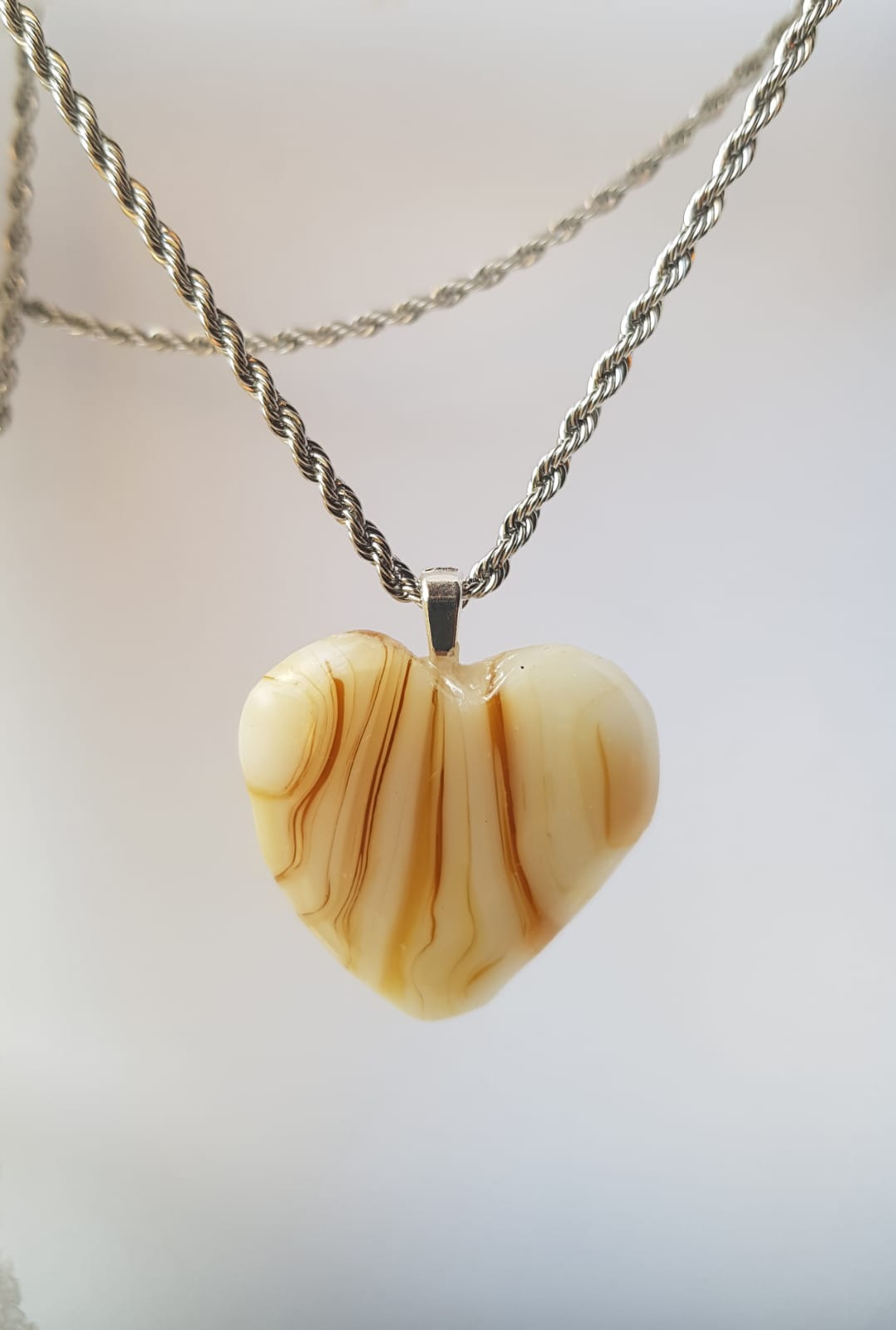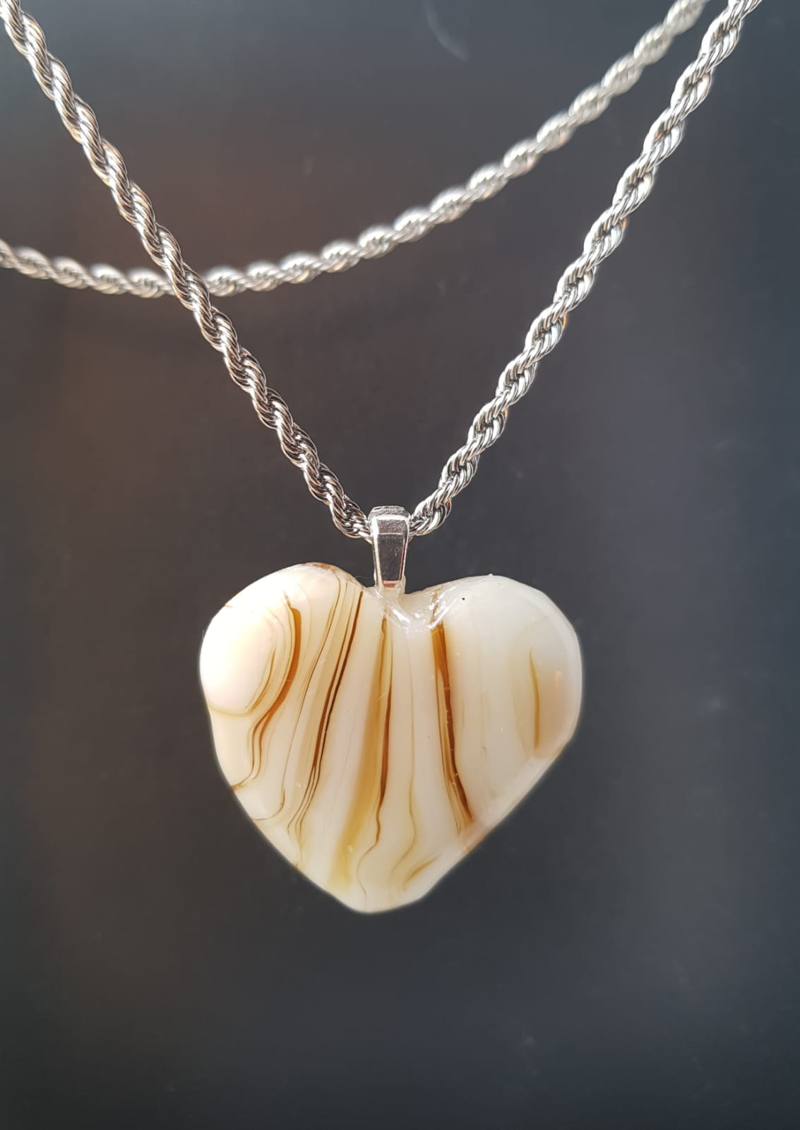 Viene con una cadenita de acero quirúrgico,que no se opaca ni ennegrece.