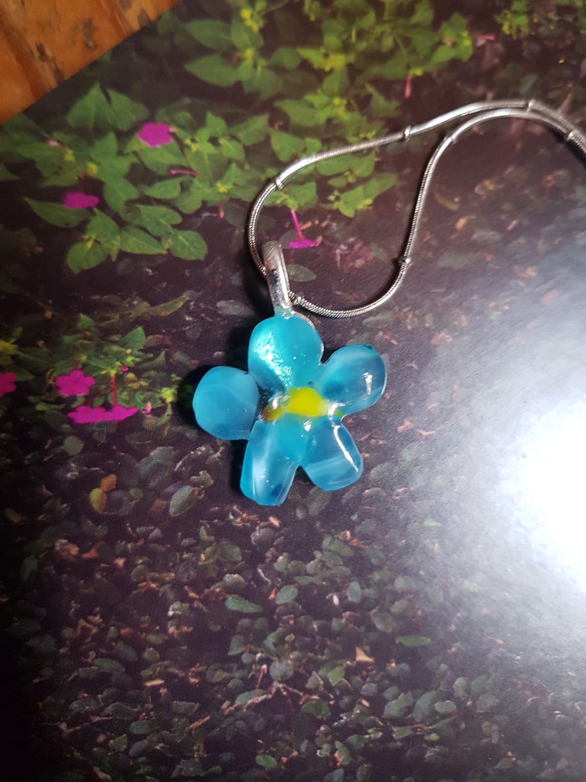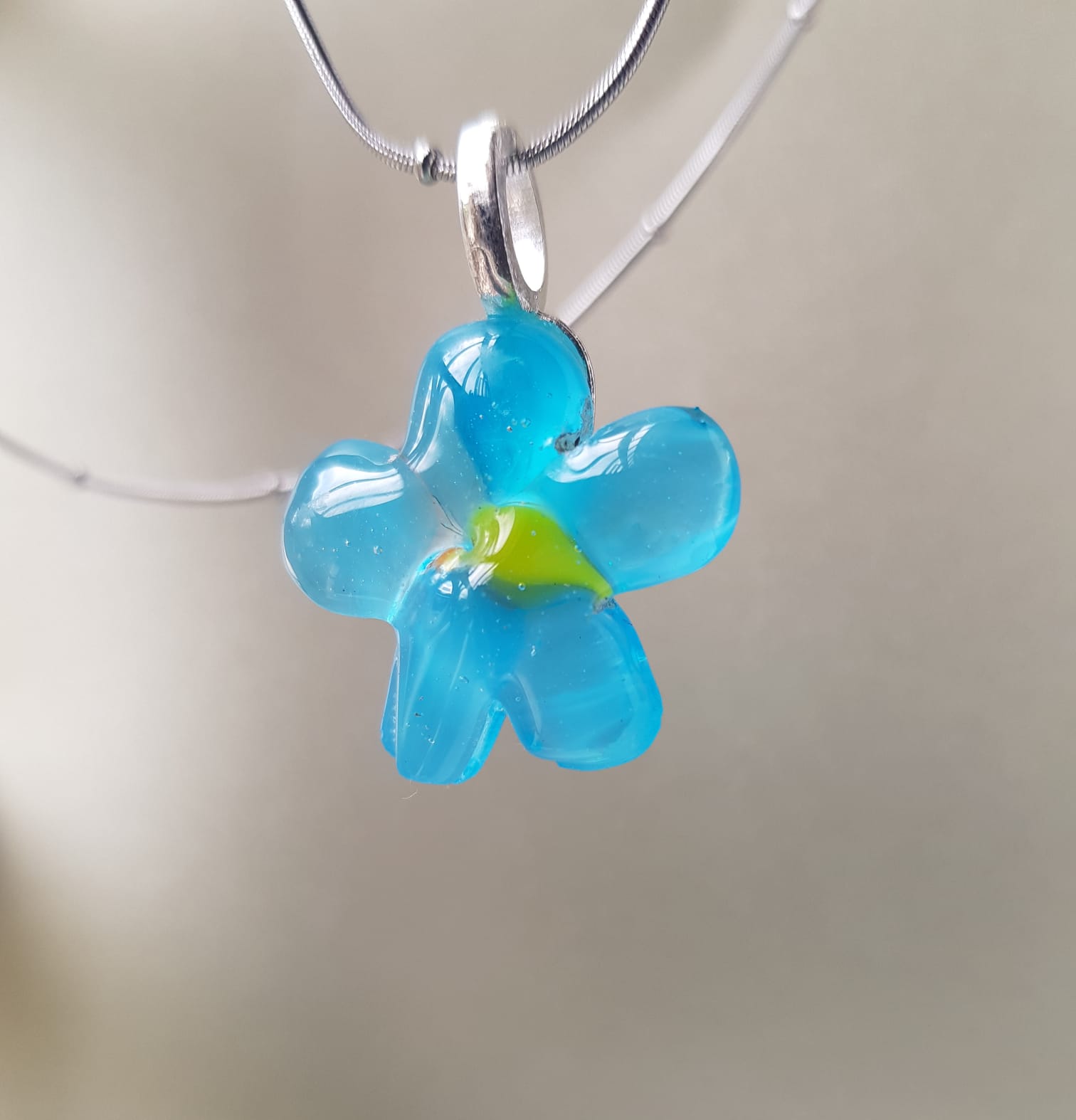 Flor realizada en molde,con molienda de vidrio celeste.