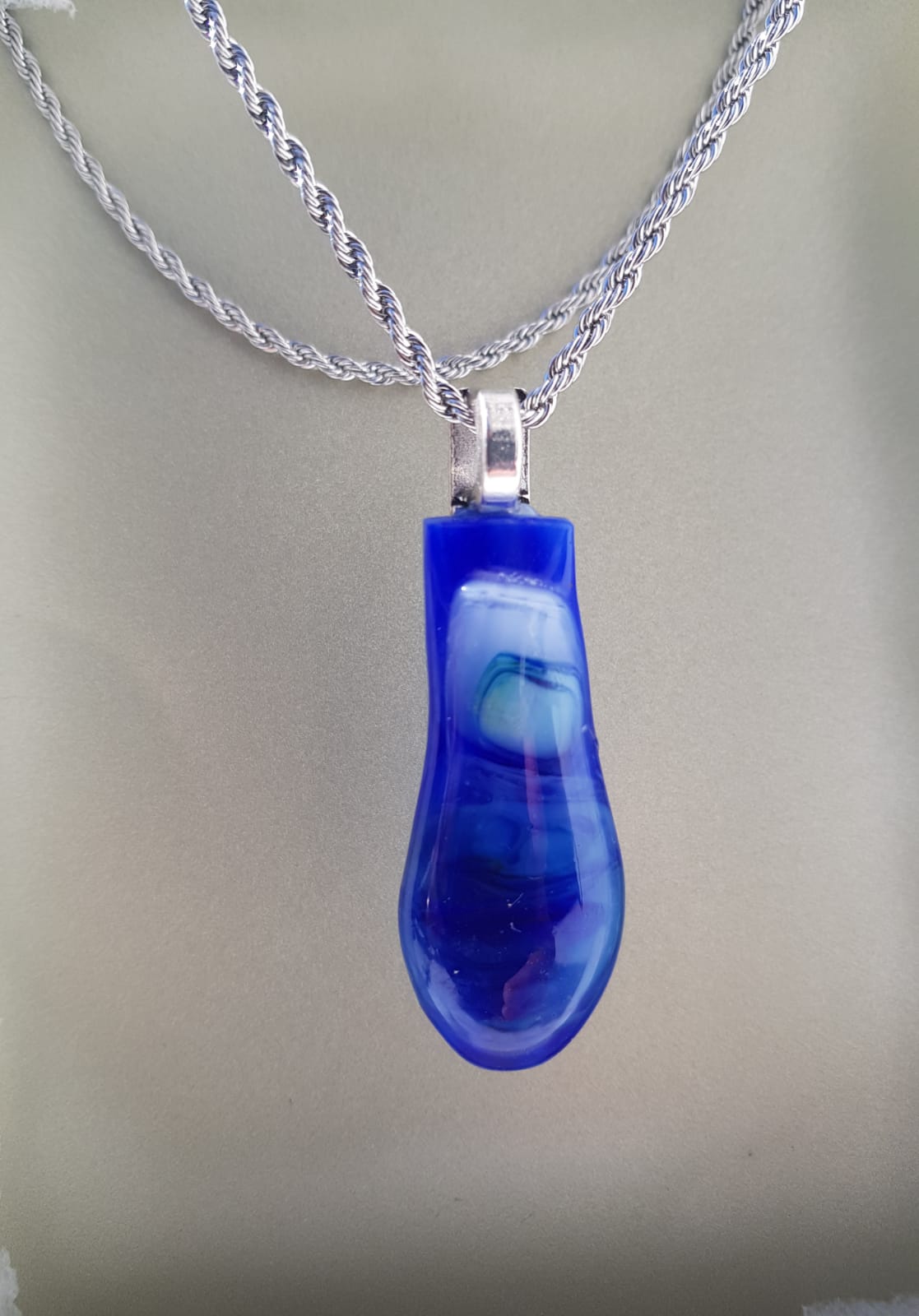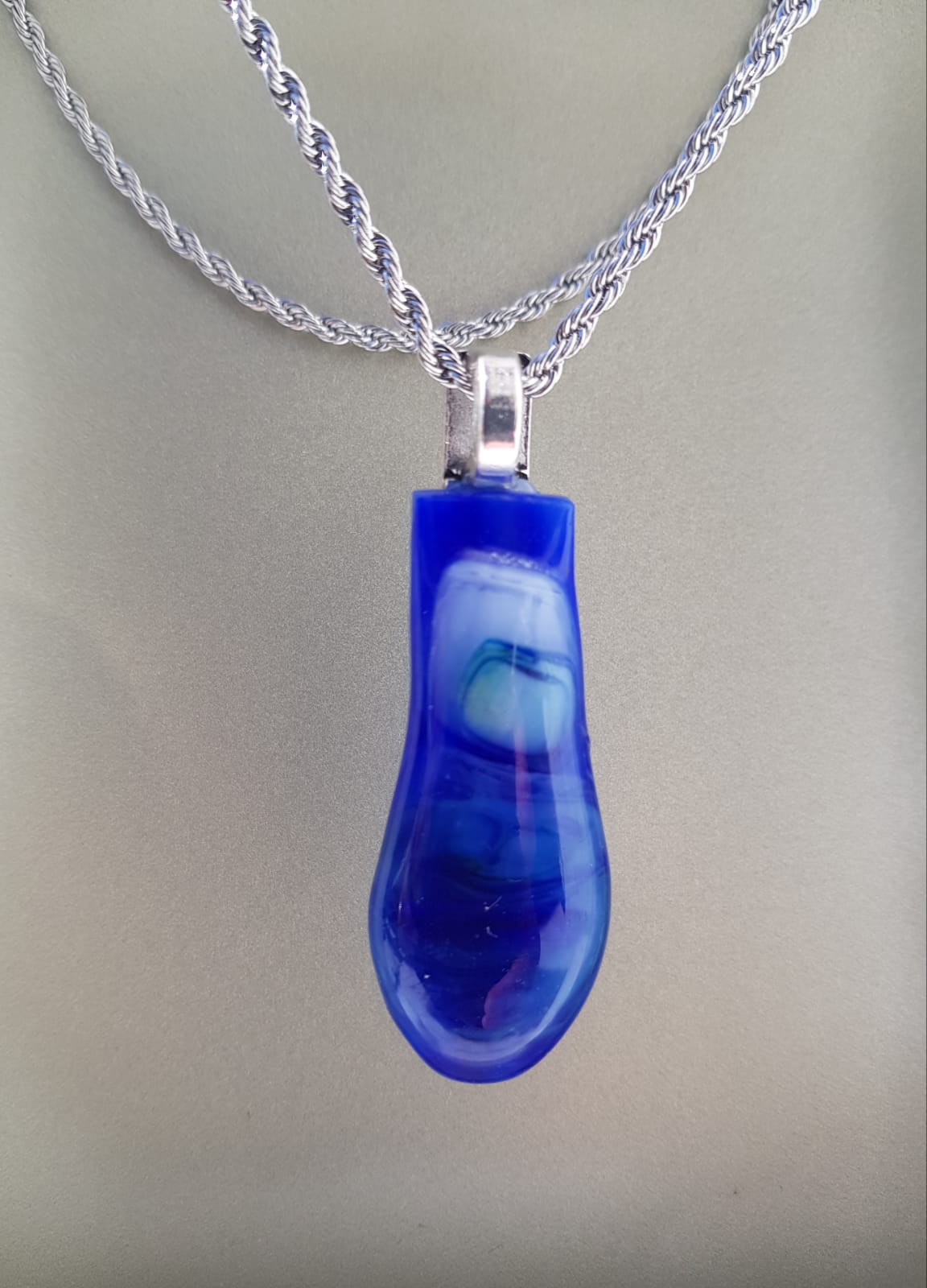 Este elegante colgante va a llamar la atención de su familia, amigos y colegas. Esta pieza única está hecha a mano con varias capas de vidrio superpuestas.